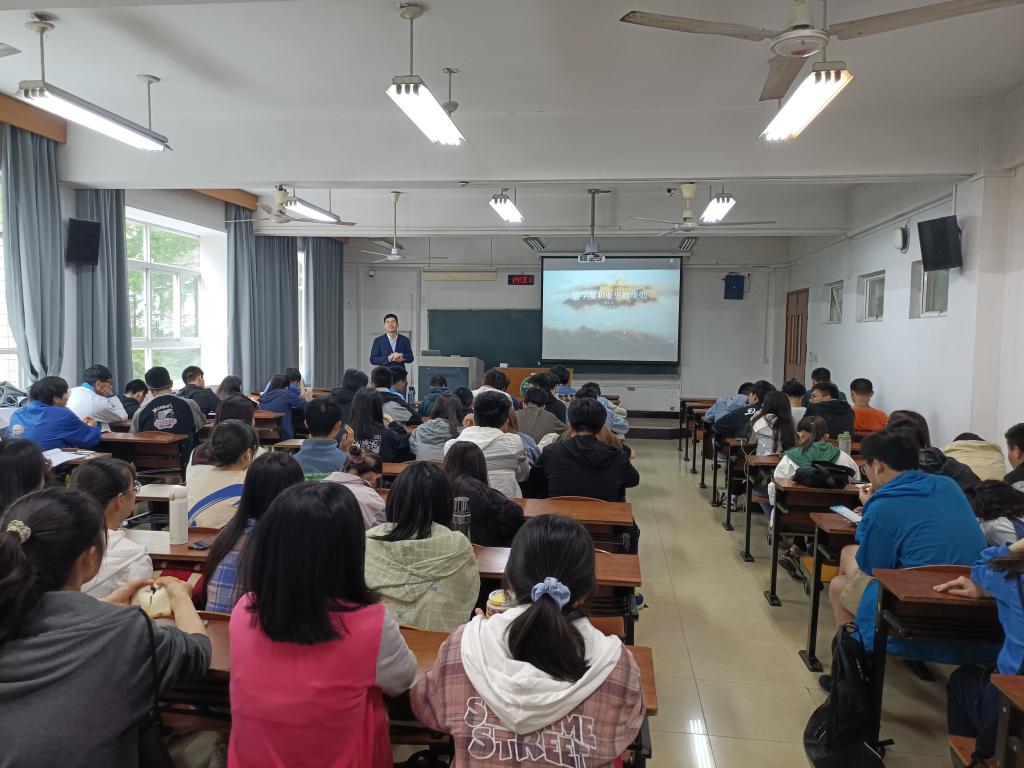 褚世兵从物理学科的发展史讲起,向同学们介绍了许多著名的物理学家及其实验室。而后,褚老师向同学们分享了自己的职业生涯规划,剖析了自己一路走来的心路历程,并结合个人留学经历,向同学们介绍了申请出国的过程以及他在欧洲学习的所得所获。他鼓励同学们要敢于有梦、勇于追梦、勤于圆梦,努力提升自己的专业水平,为中国特色社会主义事业贡献青春力量。