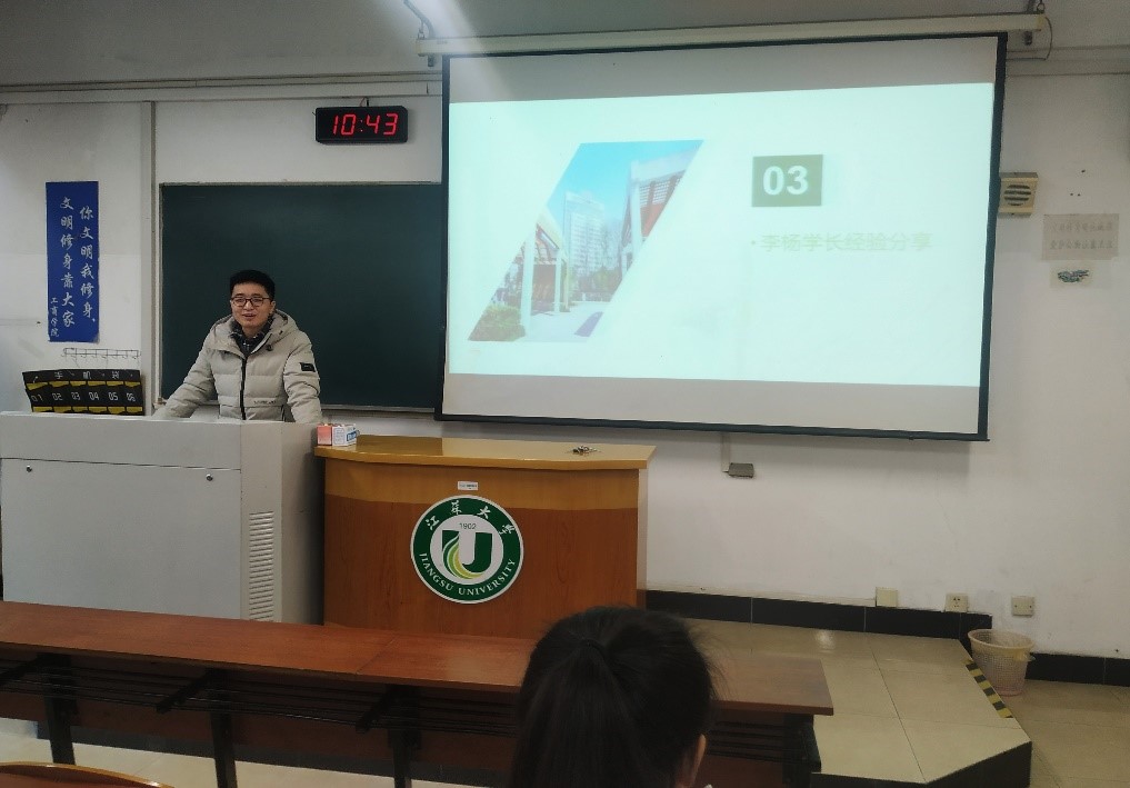首先,由张培培老师给18级学生介绍考研的目前情况,从考研的必要性,选择专硕还是学硕,考研信息的获得渠道等方面向同学们展现了考研的大致情况。然后,由沈雪敏和李杨分别分享自己考研的经验。沈雪敏从择校选专业的具体注意事项开始讲起,给同学们分析了备考前所需要的做的准备工作以及备考期间如何提高学习效率,并提醒同学们注意休息,保证健康。李杨以时间为线索,分享了自己当年考研时的心路历程,不仅介绍了获得备考资料的途径,也根据自己的经历给同学们推荐了一些备考方法。接着,蒋春翔老师给同学们回忆了自己当年考研的情况,强调了考研之重要性,鼓励同学们向两位研究生学长学姐学习,不负韶华,不负青春。
