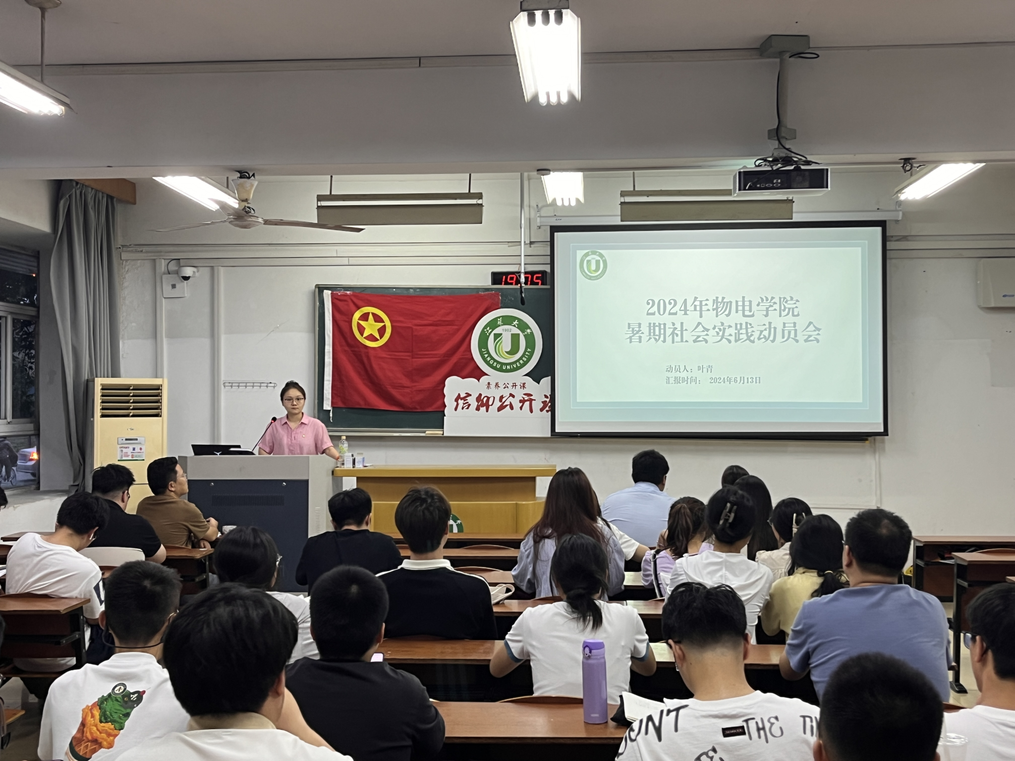 为提高同学们社会实践的积极性,和对社会实践的理解认识。云顶娱乐 云顶娱乐 于6月15日开展2024暑期社会实践活动动员大会,围绕实践选题、社会调查、安全教育、新闻宣传、经验分享等方面开展一系列的交流培训活动。本次公开课面向云顶娱乐 物电云顶娱乐 全体学生,物电云顶娱乐 团委书记叶青担任活动主持人。