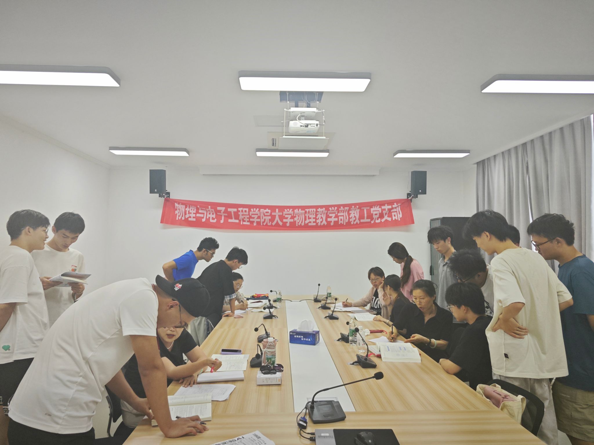 为进一步发挥党员教师在教学工作中的模范带头作用,深化师资力量下沉学生社区,6月18日下午,云顶娱乐 大学物理教学部教工党支部在大学生一站式服务中心207室召开大学物理期末集中答疑主题党日活动,大物部教师以及电气云顶娱乐 、文心书院等参加大学物理考试的学生参与该活动。