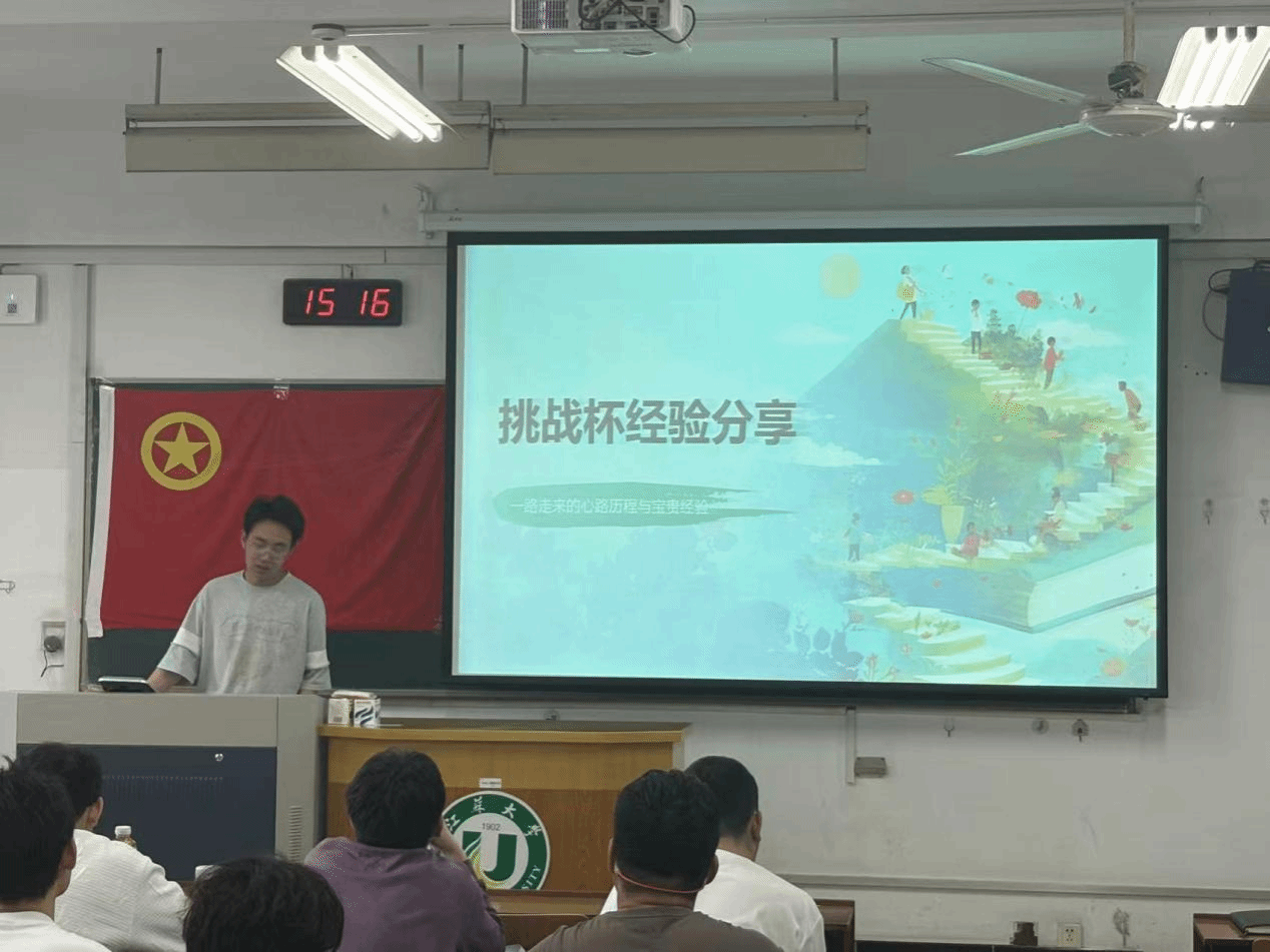 分享会上,获奖团队代表蔡家希同学从赛事准备、团队协作、项目选题、答辩技巧等方面进行了详细讲解。他结合自身参赛经历,强调了创新思维与实践能力的重要性,并鼓励同学们勇于尝试、敢于突破。“竞赛不仅是技术的比拼,更是团队精神和学术诚信的体现,”他提到,“在科研和竞赛中,坚守学术道德、恪守学术规范是取得成果的基础。”