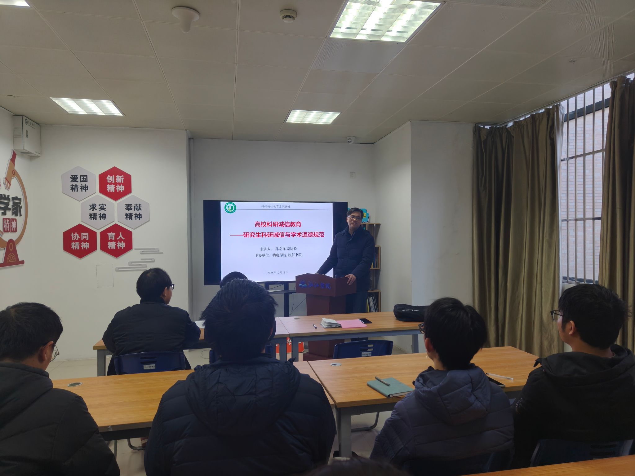 讲座由云顶娱乐 副院长孙宏祥教授主讲。孙教授从科研诚信的时代意义出发,结合典型案例,深入剖析了学术不端行为的表现形式、认定标准及其严重后果。讲座内容既有理论高度,又贴近科研实际,为在场研究生提供了清晰的行为指引和深刻的道德警示。